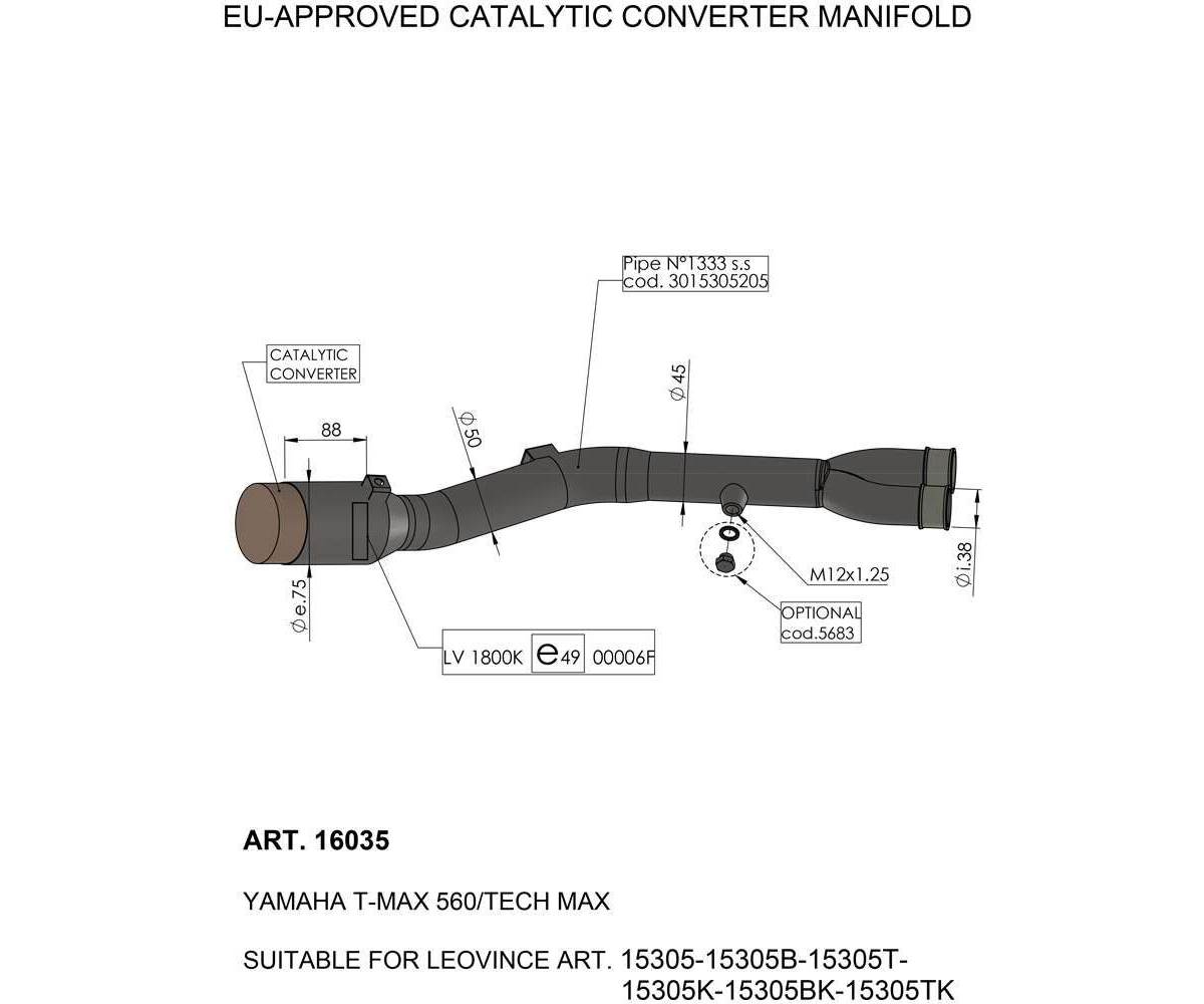 Leo Vince mellemrør til Yamaha T-Max 560 2020-2021 (Sportskatalysator godkendt)