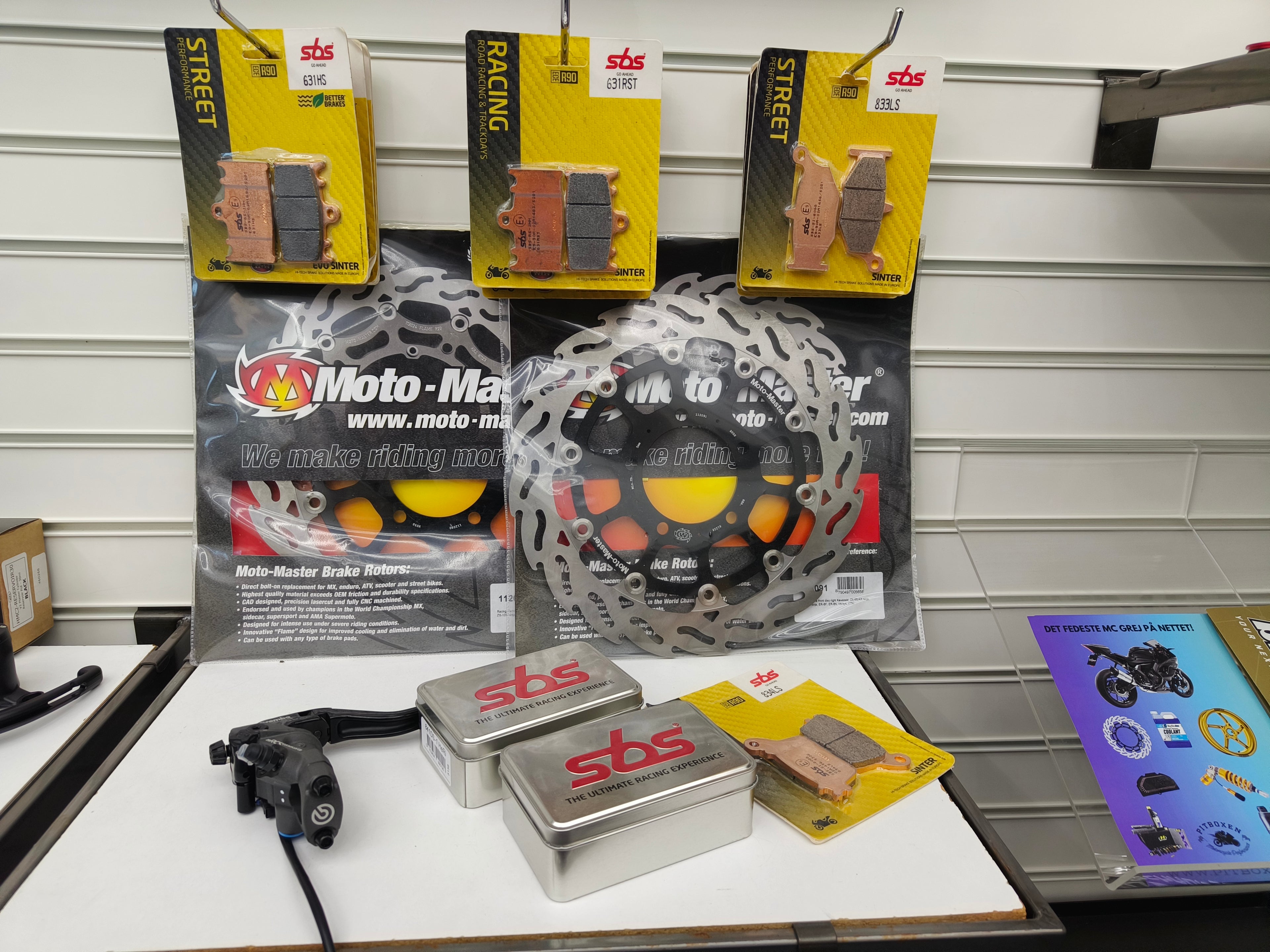 Pitboxen fører udelukkende kvalitets bremseklodser. Blandt andet fra Moto-Master og danske SBS.